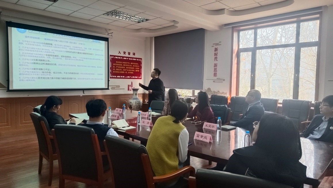 会上首先邀请员工发展指导中心赵鑫老师开展心理健康教育培训及交流,赵老师从心理问题类型入手,通过躯体症状及日常表现等方面的分析介绍,进一步明确不同类型心理问题的发现与识别方式,着重强调了在特殊时间节点对部分群体的关心关注,最后结合具体的实践案例,从访谈话术、沟通技巧、工作流程等方面进行详细介绍。