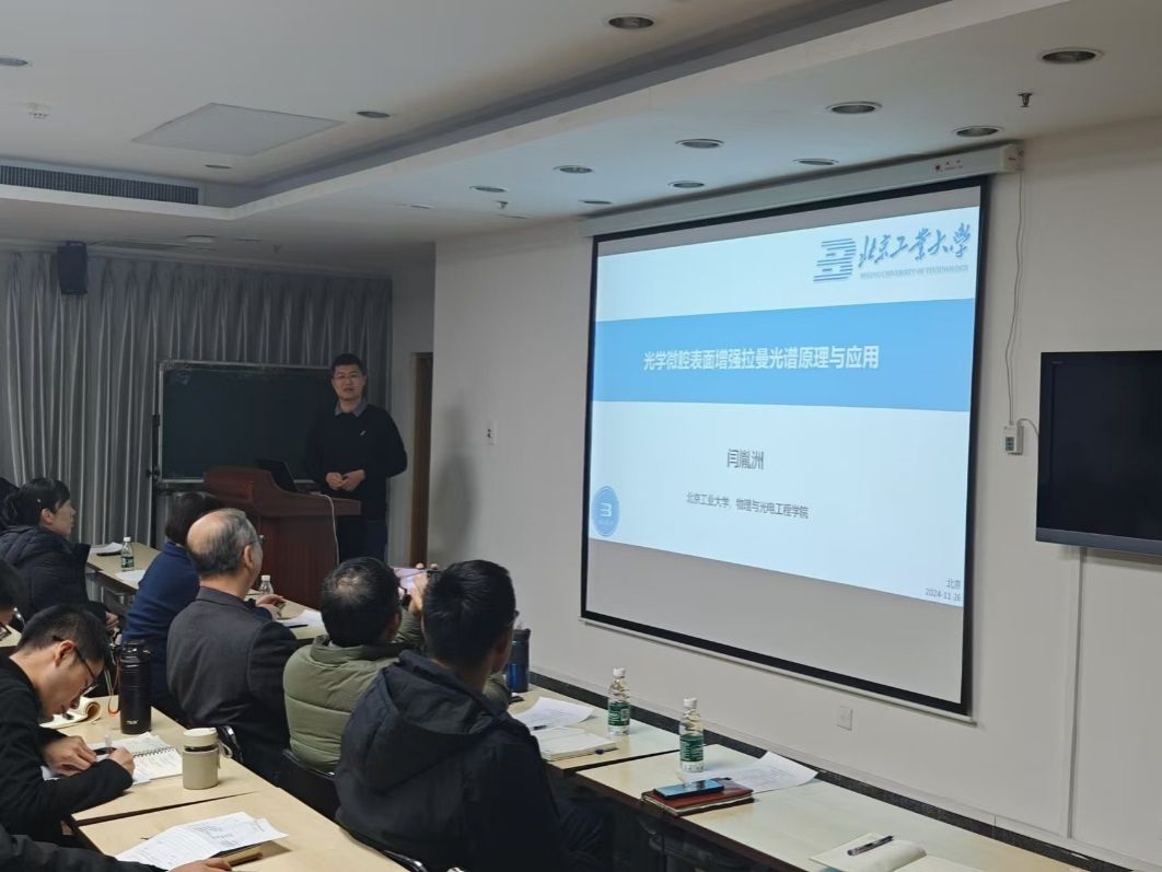 闫胤洲教授作题为《光学微腔表面增强拉曼光谱原理与应用》的学术报告