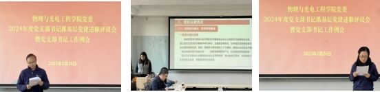 2月26日,公司党委在数理楼318会议室召开2024年度党支部书记抓基层党建工作述职评议会暨党支部书记工作例会。员工工作部(处)副部(处)长于磊列席会议,公司班子成员及全体师生党支部书记参会。公司党委书记姚爱华主持会议。