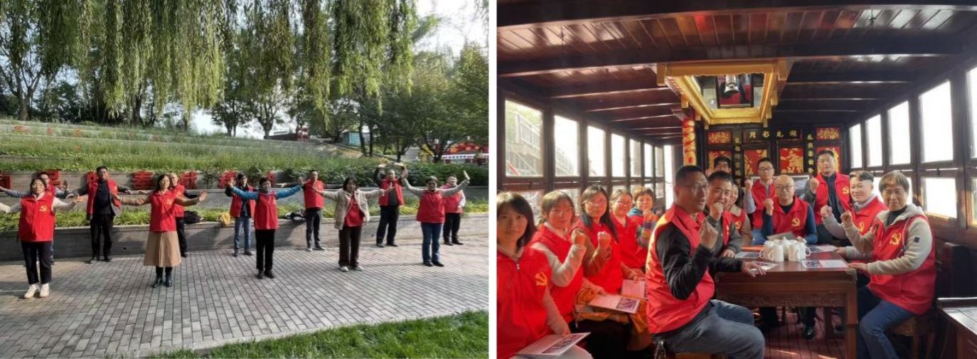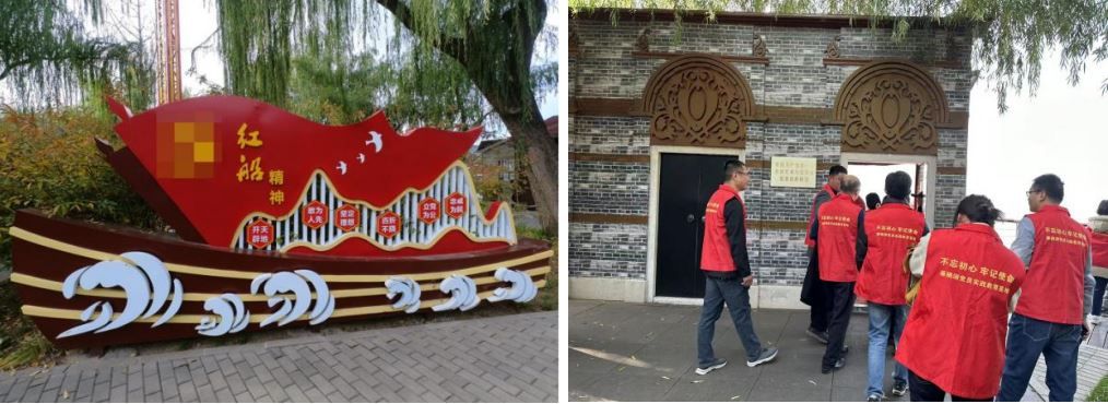 “两弹一星”的巨大成功离不开共产党的坚强领导和正确方针,集中举国力量办大事,批准巨额专款作支持,组织起全国各部门科技人才从白手起家,在短短数年间就获得了令世界惊叹的巨大成就,凸显了我国的制度优势。为了回顾我党伟大发展历程、领会新时代红色精神谱系,党员们又来到具有APEC会议和“一带一路”国际峰会背景的雁栖湖新时代文明实践基地。在“一大”会址、“南湖红船”、百年复兴之路的各复原场景中进行沉浸式学习体验。从开天辟地、敢为人先的“红船精神”,经过各个时期丰富发展出的“井冈山精神”“长征精神”“延安精神”“西柏坡精神”“大庆精神”“两弹一星”精神“改革开放精神”,再到开放包容、互利共赢的“丝路精神”,既一脉相承又与时俱进。党员们还积极实践了“习声回响”聆听总书记讲话、向金灯山英烈祭奠默哀、练习投掷手榴弹、红歌手势舞、排演“一大”会议情景话剧等形式多样的活动。